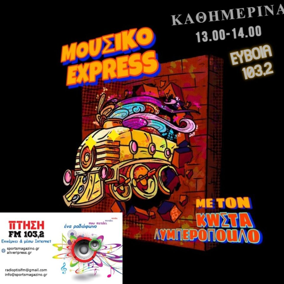 Όπως ήδη γνωρίζετε από Δευτέρα έως και Παρασκευή για μια ώρα και συγκεκριμένα από 13:00 έως 14:00 σας κρατάμε συντροφιά στο ταξίδι των αναμνήσεων με αξέχαστες μουσικές επιτυχίες με τον συνεργάτη του σταθμού μας Κώστα Λυμπερόπουλο στην εκπομπή του σταθμού μας με την ονομασία MOUSIKO EXPRESS